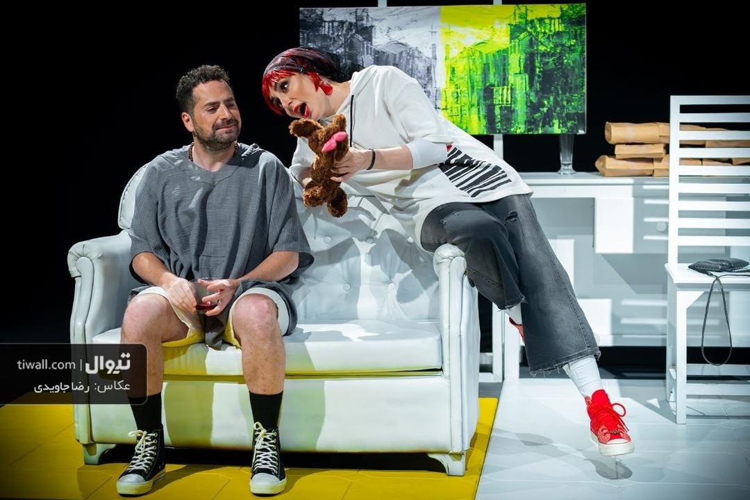 "رضا مهدیزاده" طراح صحنه؛ صحنه را با وسایلی سفید در فضایی سیاه به گونه ای طراحی کرده که تنها نیمی از کفپوش، یک سطل زباله و یک میز عسلی به رنگ زرد فضا را از دو رنگ سفیدی و سیاهی مطلق دراورده است. رنگی که گاها ترس، احتیاط و اضطراب است. زرد، رنگ تحریککننده ذهن است و در طراحی صحنههای مرتبط با نبوغ، تفکر، کشف یا لحظههای بیداری ذهنی، میتواند حضور پررنگی داشته باشد.